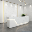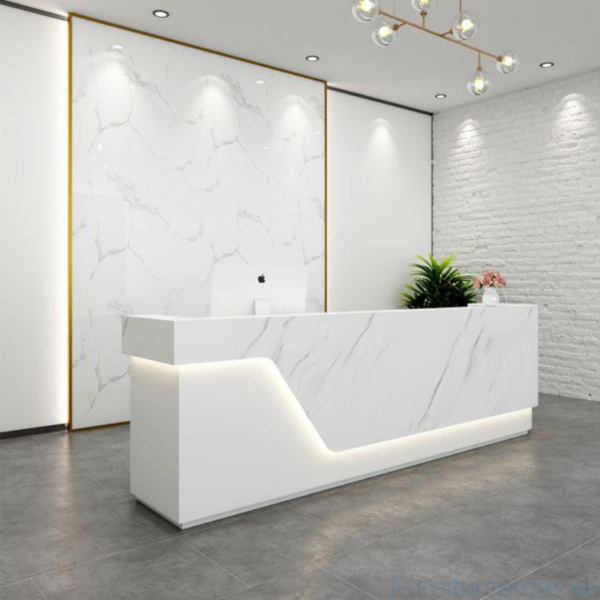 The front façade is designed with a slanted (angled) shape, giving the counter a dynamic and contemporary appearance.