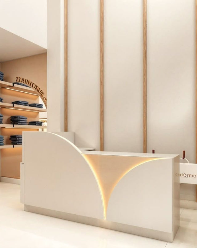 Lighting: Equipped with a concealed LED light box, adding a modern and elegant touch to the reception area